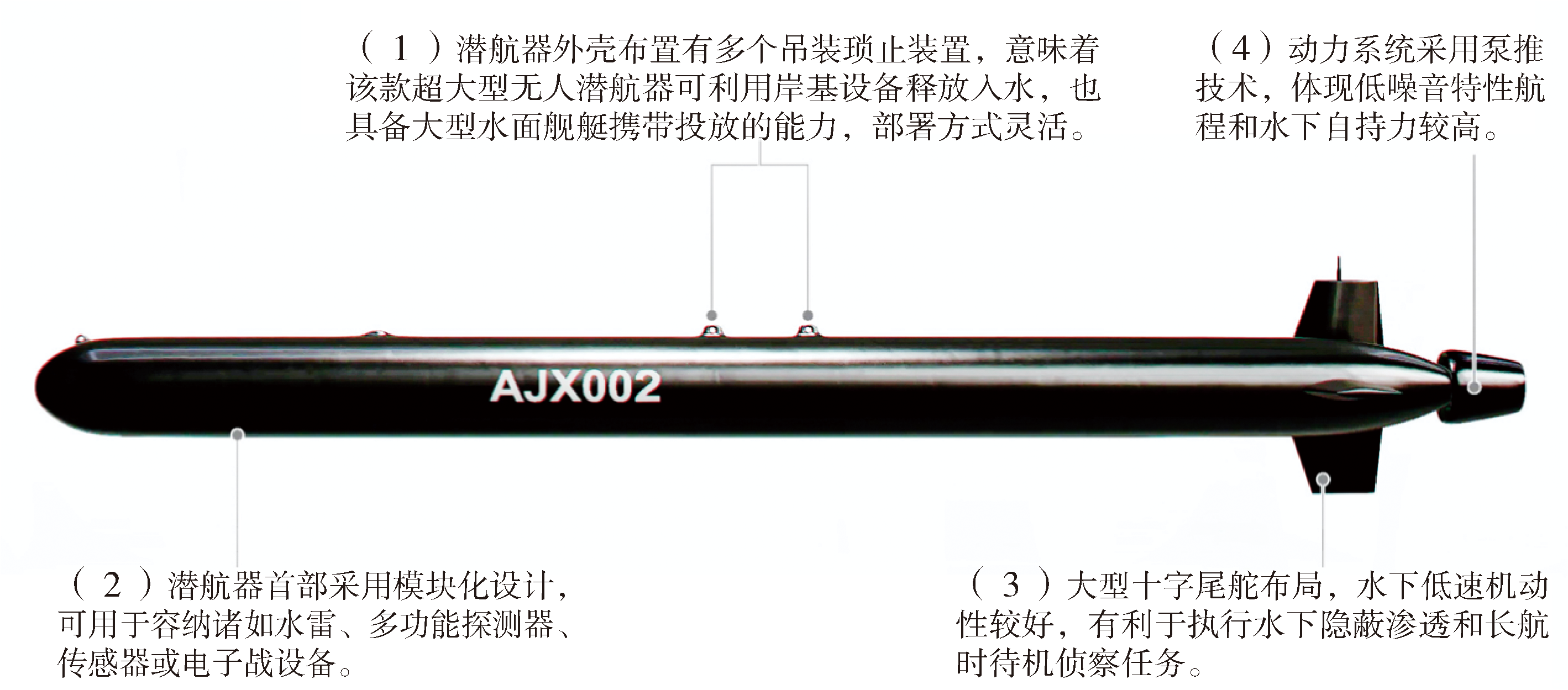 Fig.8 Technical characteristics of AJX002 domestically produced unmanned underwater mine-laying system unveiled at military parade (Image source: Janes)